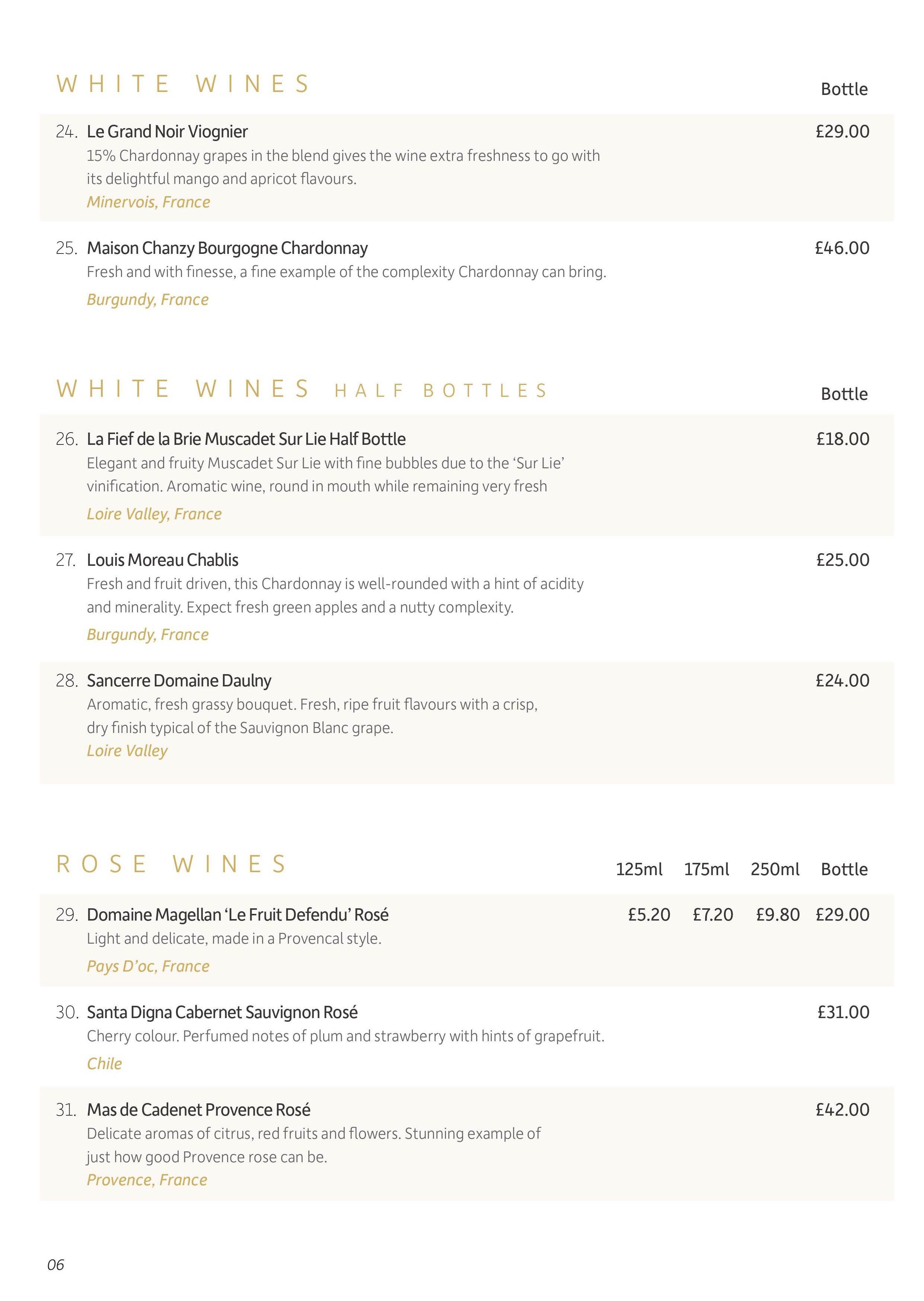 We offer a comprehensive Wine list of some 55 White, Red, Rose wines. Our full wine list can be viewed online here.